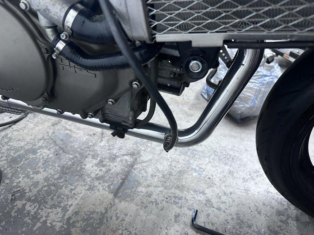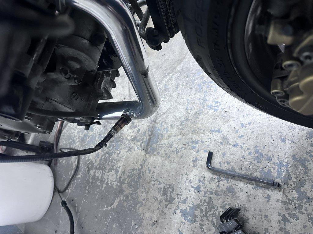 The Jardine 2-1 full exhaust system required welding O2 sensor bungs to accommodate the Bosch LSU 4.9 sensors. Since the RC51 has two cylinders, I installed an O2 sensor for each cylinder to monitor individual performance. However, a single sensor would work as well, post collector. The rear header’s O2 sensor bung was placed closer to the head than ideal due to space constraints. I’ll monitor the sensor’s longevity in this position.