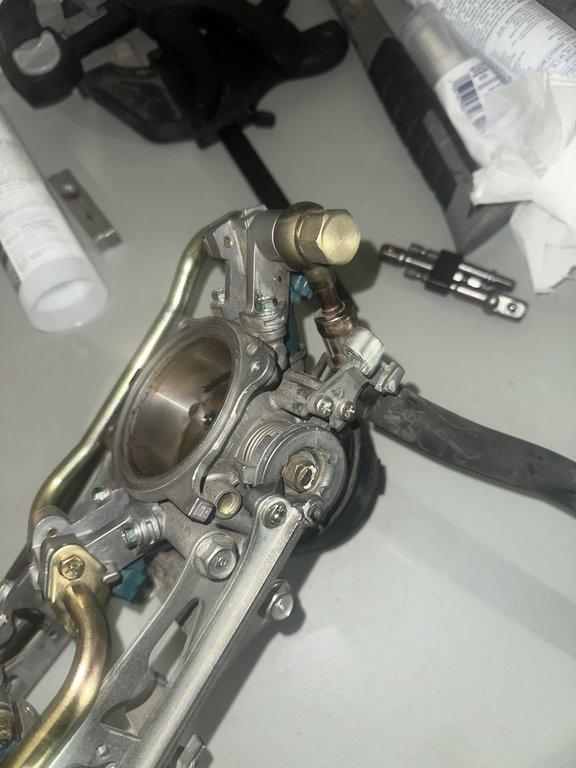 Explore this collection of high-resolution images showcasing the Honda RC51 throttle body fuel lines. These visuals provide detailed views of the fuel rails, O-rings, banjo bolt, and fuel regulator for clear reference.