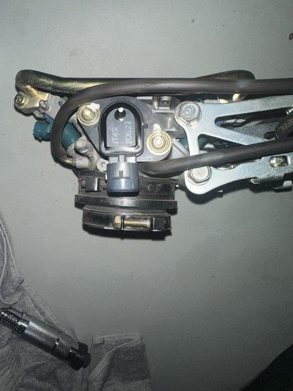 The Honda RC51 employs a single Throttle Position Sensor (TPS) mounted on the throttle body to monitor the throttle valve position. The TPS is a potentiometer that sends a variable voltage signal to the ECU, indicating the throttle opening angle, which is critical for precise fuel delivery and ignition timing. The TPS is connected via the fuel injector sub-harness.